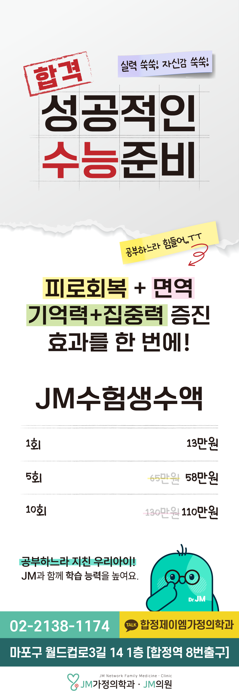 합정 JM가정의학과의원 | 대표 강한길 | 사업자 등록번호 849-97-01817