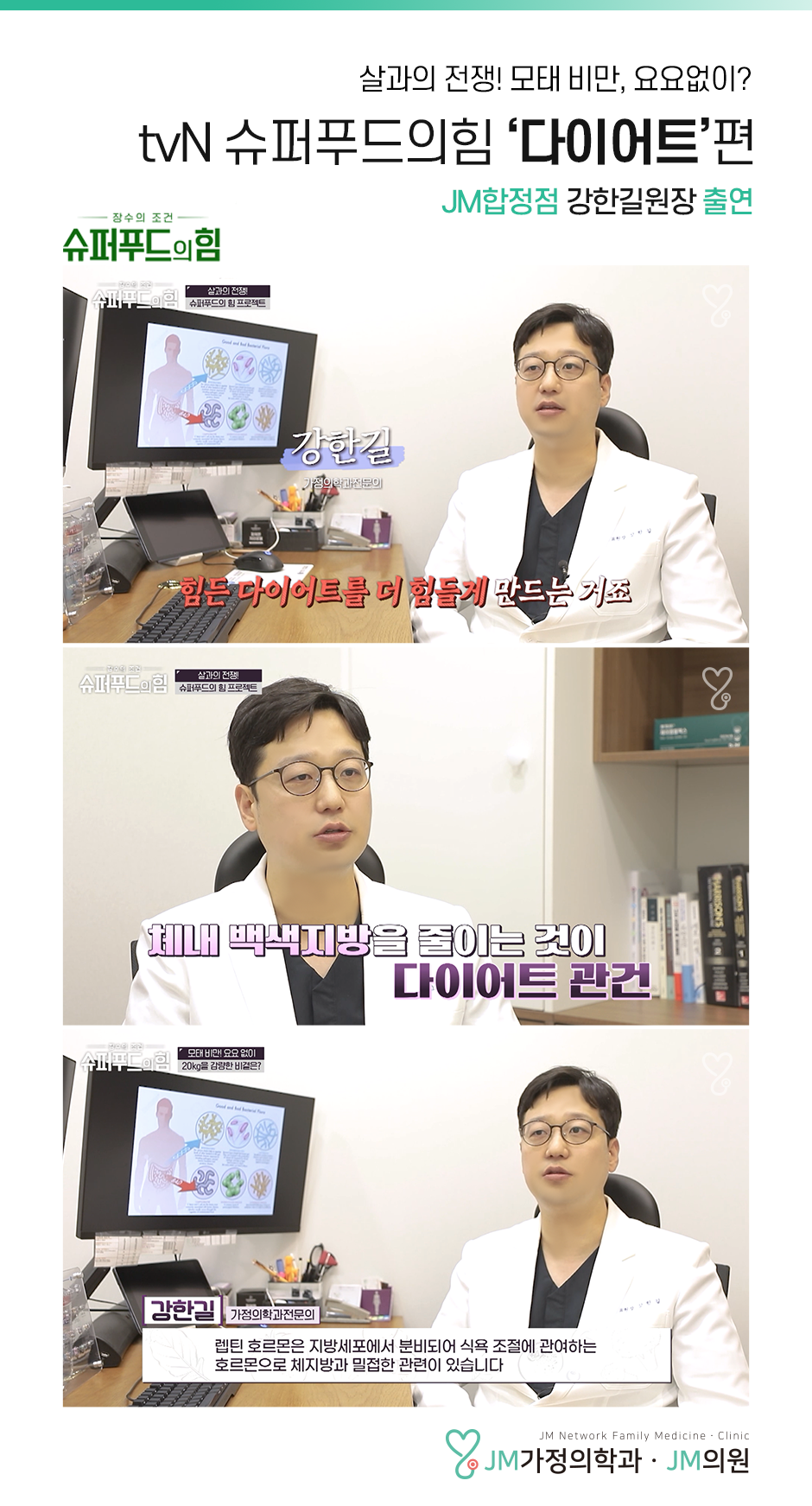 • JM 합정점 강한길원장 [tvN 슈퍼푸드의힘 ‘다이어트’편]